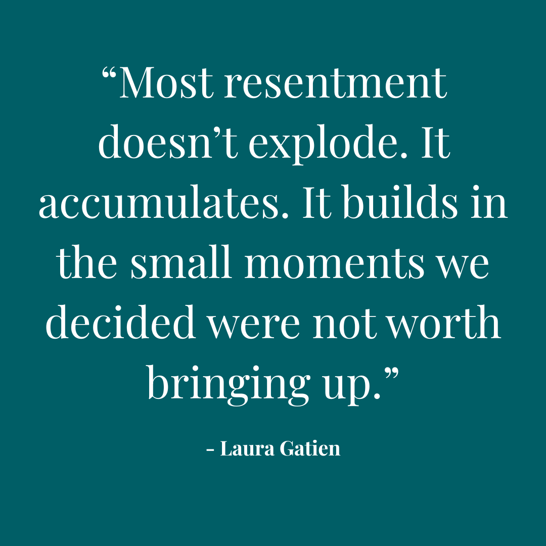 Saying, "I don’t want resentment to build. I’d rather name it now." It isn’t dramatic. Most resentment doesn’t explode. It accumulates. It builds in the small moments we decided were not worth bringing up. It grows every time we tell ourselves, "It's fine." Until it’s not. Being calm doesn’t mean you’re required to swallow it.
